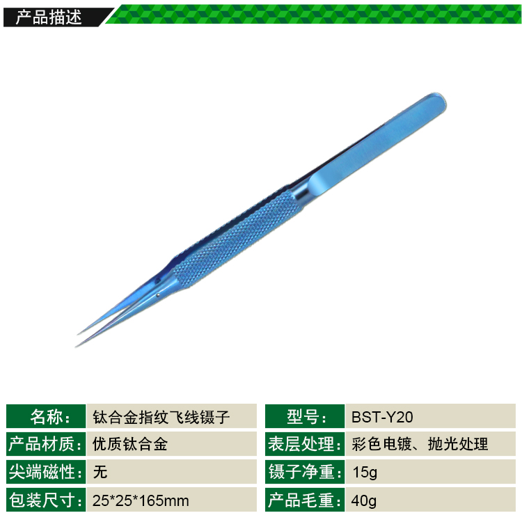 ? 產(chǎn)品名稱: 鈦合金細(xì)尖直鑷子? 產(chǎn)品型號: BST-Y20? 產(chǎn)品類別: 鑷子系列