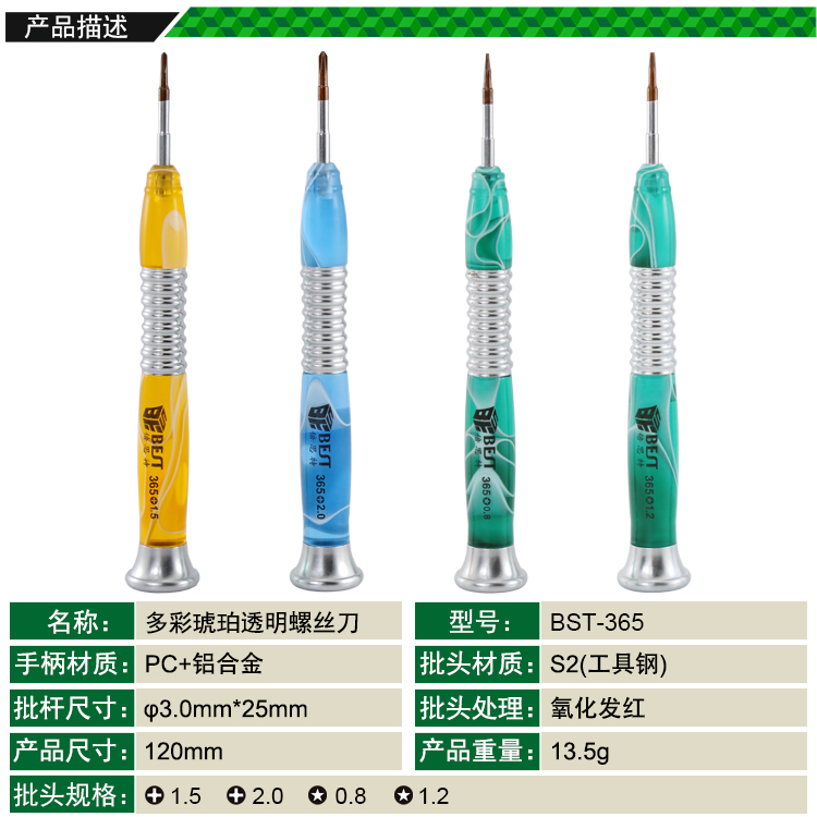 ? 產品名稱: 多彩琥珀透明螺絲批? 產品型號: BST-365? 產品類別: 螺絲批系列
