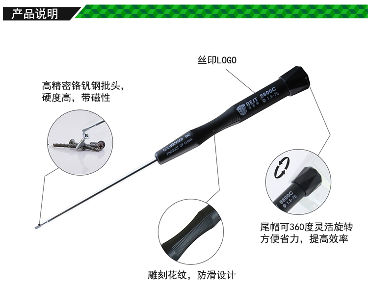 ? 產(chǎn)品名稱: 專用手機電腦拆機螺絲刀 75mm加長? 產(chǎn)品型號: BST-8800C? 產(chǎn)品類別: 螺絲批系列