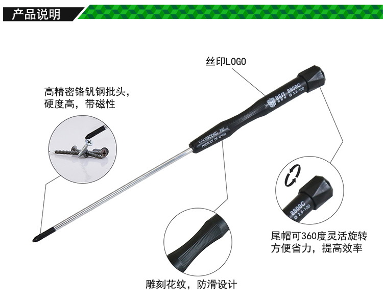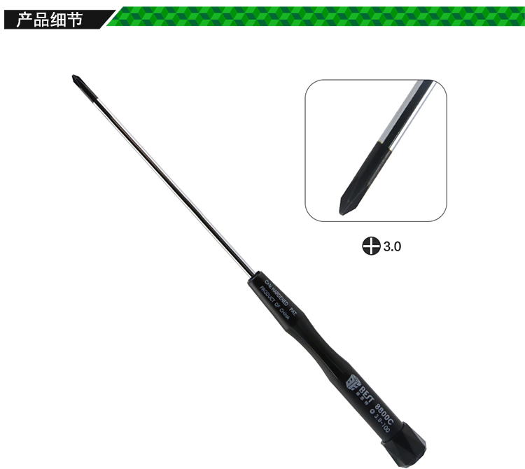 ? 產(chǎn)品名稱: 專用手機電腦拆機螺絲刀 100mm加長? 產(chǎn)品型號: BST-8800C? 產(chǎn)品類別: 螺絲批系列