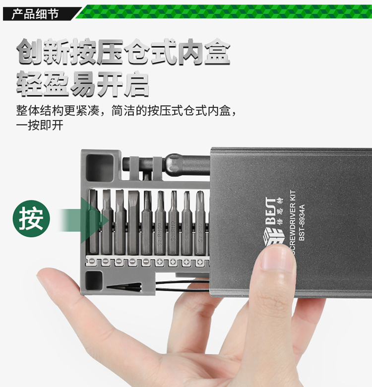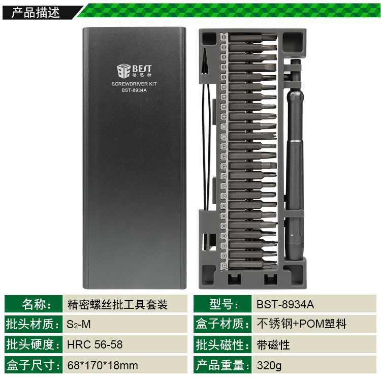 ? 產(chǎn)品名稱: 精密螺絲批工具套裝? 產(chǎn)品型號: BST-8934A? 產(chǎn)品類別: 套批系列