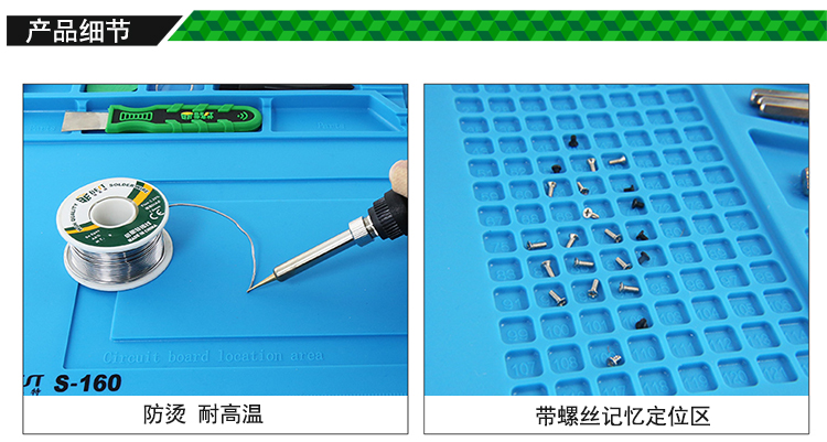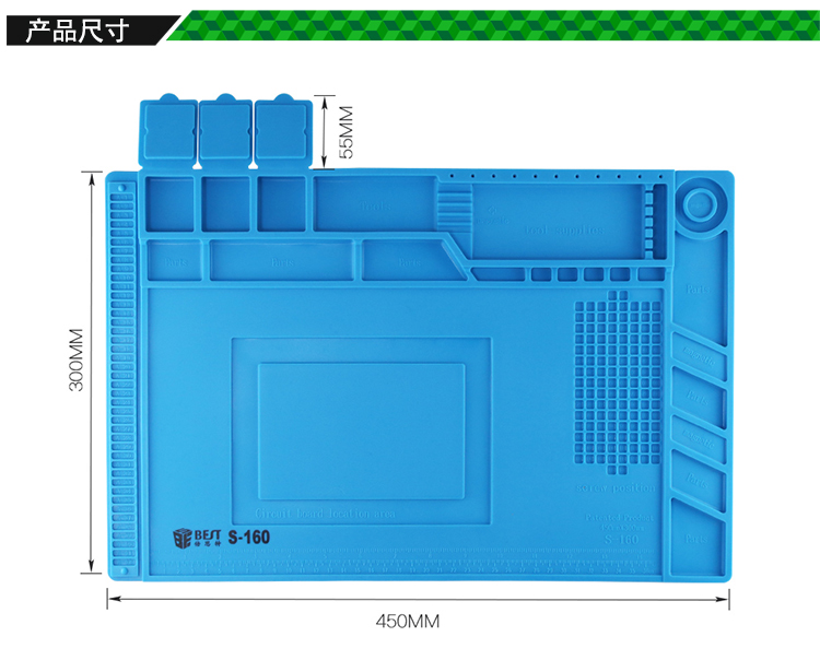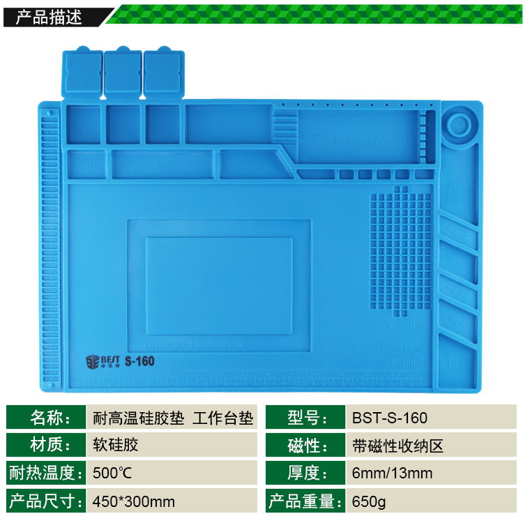 返回當(dāng)前位置: 首頁(yè) / 產(chǎn)品中心 / BST-S-160 耐高溫硅膠墊 工作臺(tái)墊 帶磁性收納區(qū) 螺絲記憶定位區(qū) 零件收納盒 隔熱墊