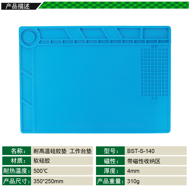 返回當(dāng)前位置: 首頁(yè) / 產(chǎn)品中心 / BST-S-140 耐高溫硅膠墊 工作臺(tái)墊 帶磁性收納區(qū) 螺絲記憶定位區(qū) 隔熱墊