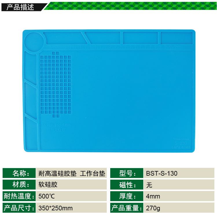 返回當(dāng)前位置: 首頁 / 產(chǎn)品中心 / BST-S-130 耐高溫硅膠墊 工作臺(tái)墊 帶八格零件收納 螺絲記憶定位區(qū) 隔熱墊