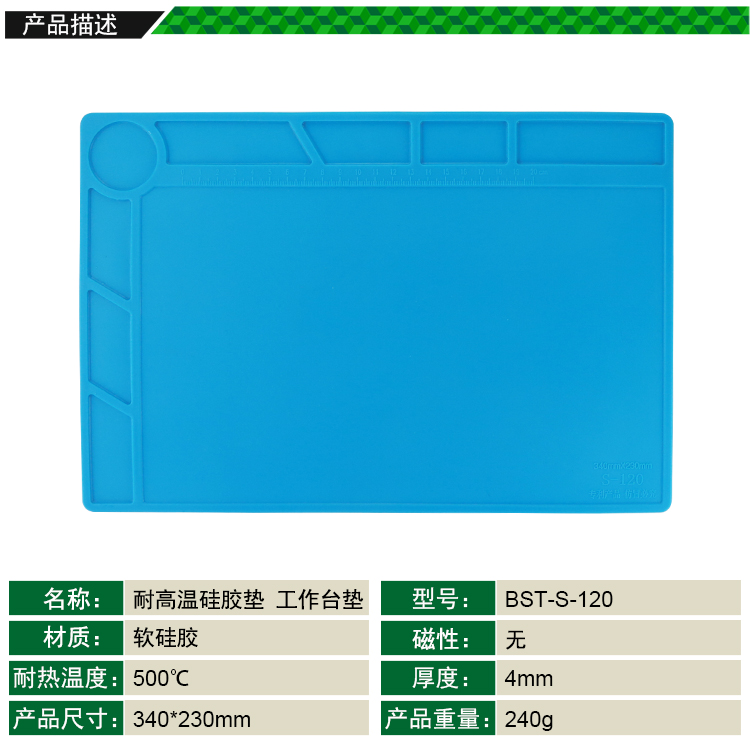 返回當(dāng)前位置: 首頁(yè) / 產(chǎn)品中心 / BST-S-120 耐高溫硅膠墊 工作臺(tái)墊 帶八格零件收納 隔熱墊