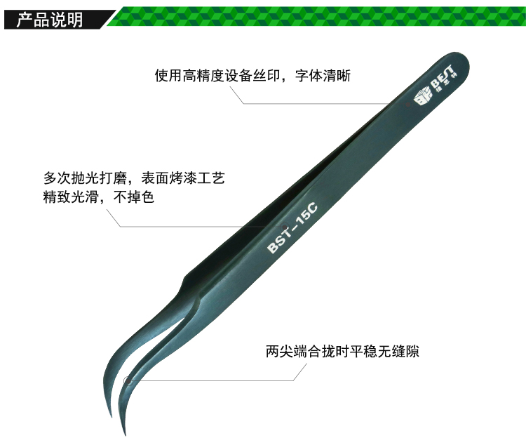 ? 產(chǎn)品名稱: 彩色鑷子 不銹鋼彩鍍鑷子? 產(chǎn)品型號: BST-15C? 產(chǎn)品類別: 鑷子系列